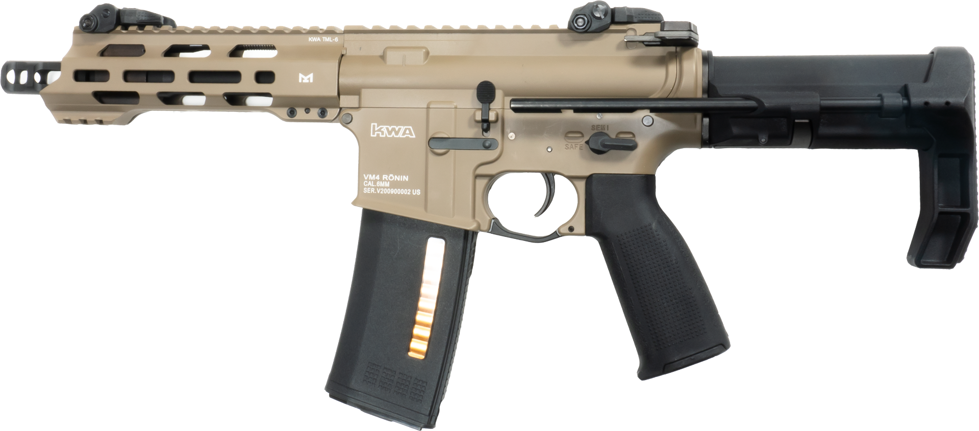 The next generation of variable FPS Ronin AEGs have arrived. KWA’s upgraded VM4 AEG 2.5 gearbox are now drop-in trigger ready allowing users to employ their favorite MOSFETs or electronic triggers to maximize weapon performance. The Ronin T6 PDW is stacked with features derived from extensive user feedback; from the redesigned MLOK handguards, improved PDW stock, ambidextrous charging handle and KWA’s brand new SOCOM-style muzzle brake, the T6 is once again ready to dominate the playing field.
