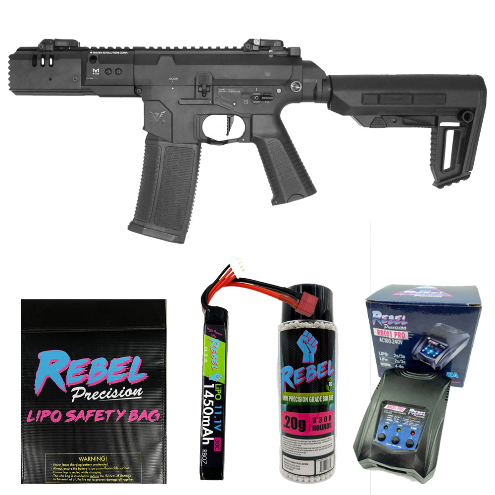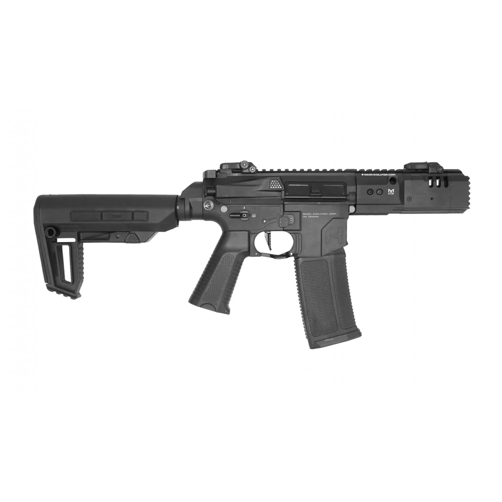 The Raven Evolution EVO series is our newest design by our engineers in Canada. Built with a robust and reinforced polymer body and features full metal m-lok handguard and retractable multi-purpose polymer stock. The Rebel Series have also introduced a unique drop stock adaptor for more ergonomic and player oriented platform for players to enhance aiming experience with protective eyewear.